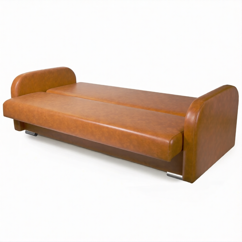 Диван-книжка раскладной ДР-2.1 с подлокотниками (кожзам Эконом коричневый) обладает хорошей устойчивостью и прочностью, а также привлекательным внешним видом. Конструкционные особенности и качество исполнения придают изделию особую долговечность в эксплуатации.