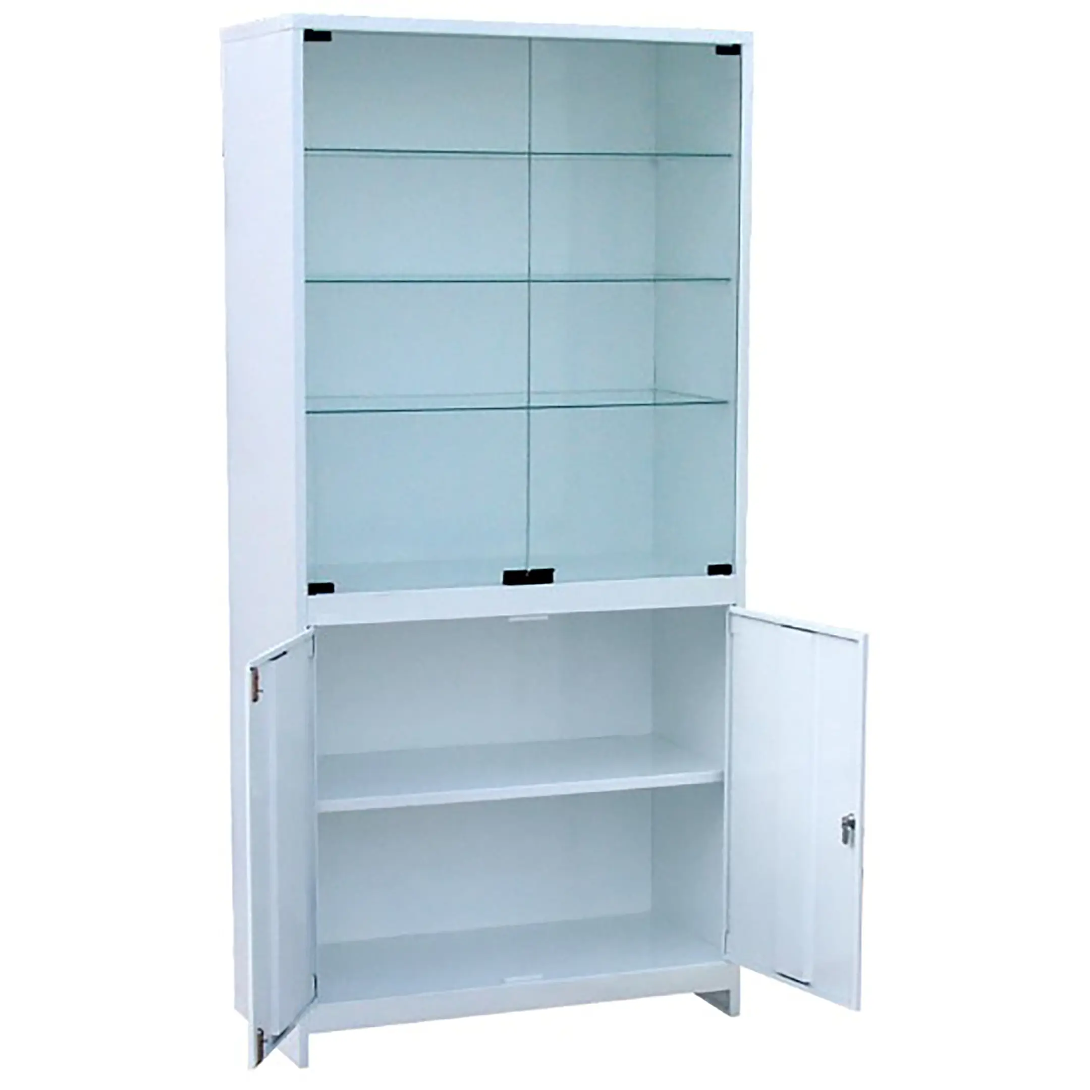• две стеклянные двери и три съемные стеклянные полки в верхнем отделении;