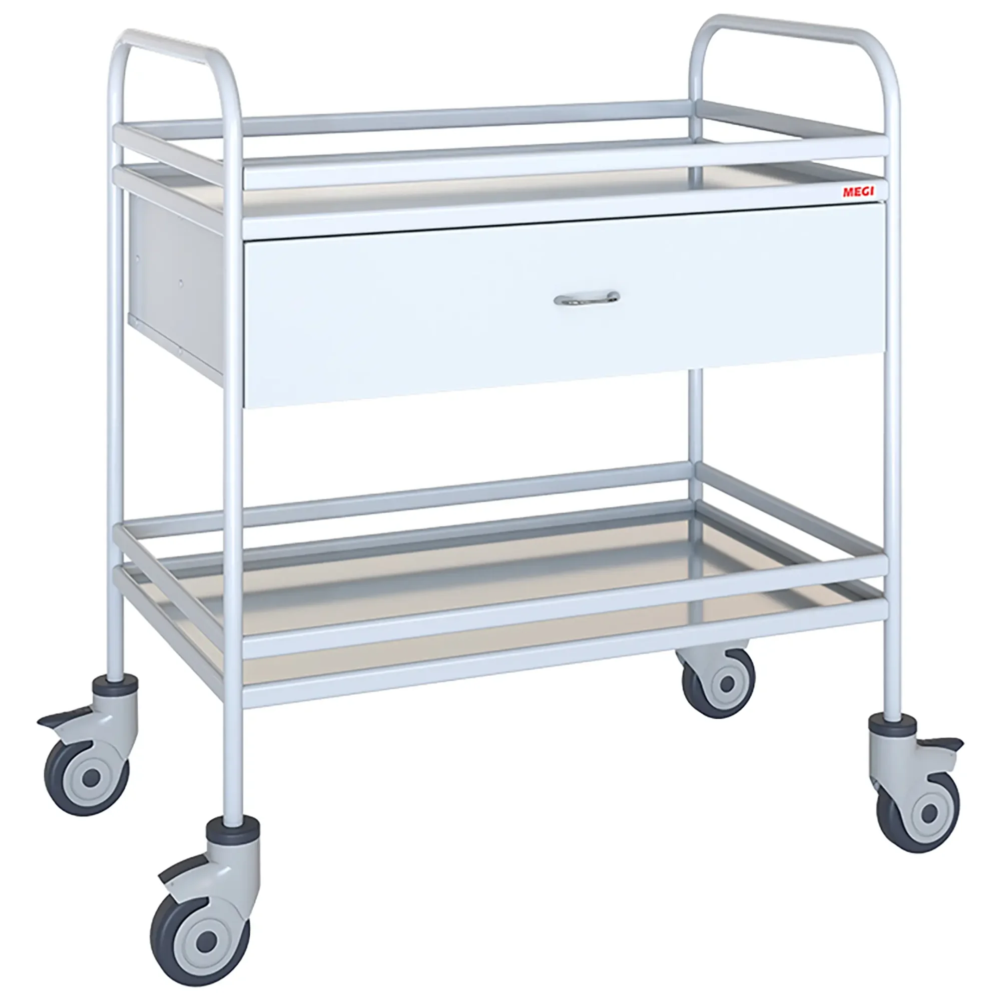 - каркас и ящик столика покрыт экологически чистым, эпоксидным полимерно-порошковым покрытием, устойчивым к обработке всеми видами медицинских дезинфицирующих и моющих растворов;