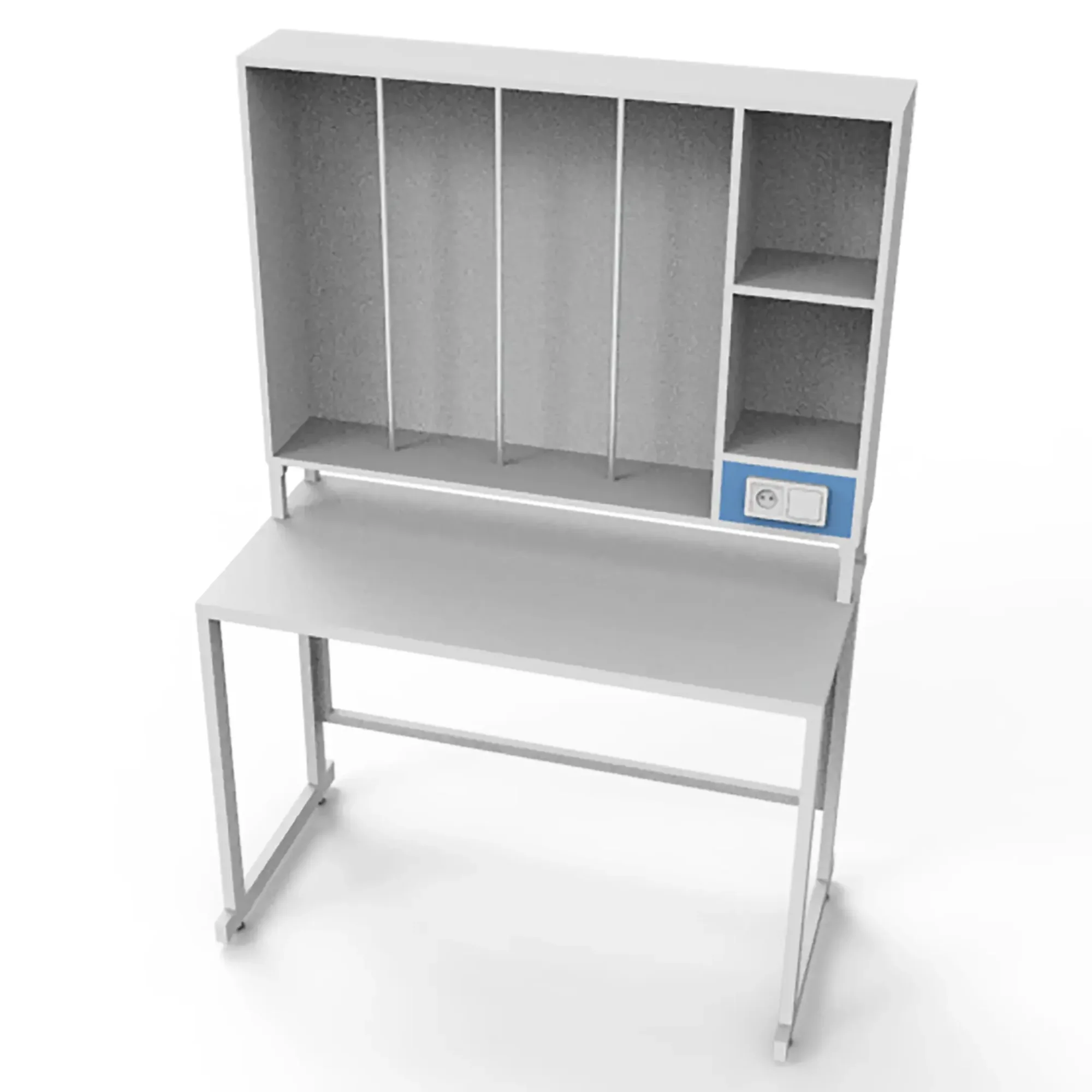 - Практичная надстройка — оборудована светильником с выключателем и розеткой для освещения и подключения техники.