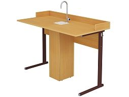 - Встроенная мойка — комплектуется водопроводным однорычажным краном и раковиной для проведения опытов с водой и реактивами.