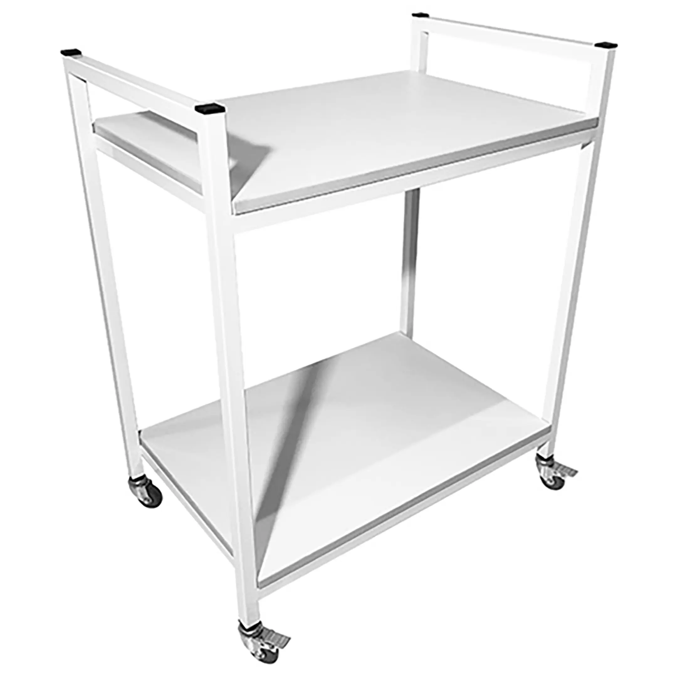Стол лабораторный мобильный СЛм 17.004 (белый) — это функциональное и удобное оборудование, предназначенное для временного размещения и удобного перемещения инструментов, предметов и приборов в медицинских учреждениях и лабораториях. Модель оснащена верхней и нижней полками из ЛДСП, удобными ручками для перемещения и установлена на колесные опоры. Каркас выполнен из стального профиля.