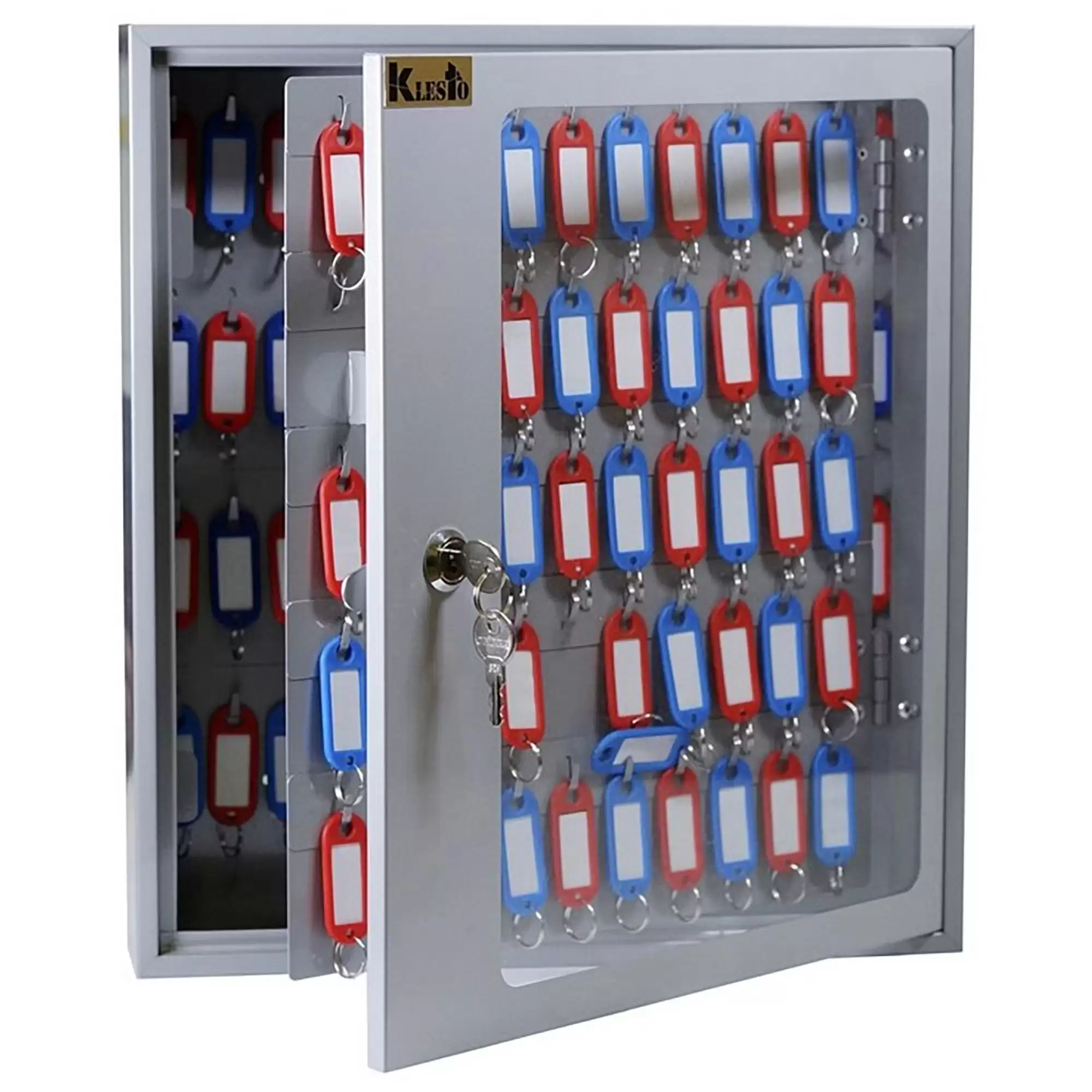 Ключница SKB-102 (на 102 ключа) с брелками — это стильная и высоковместимая настенная система для организованного хранения ключей в офисах и на крупных предприятиях. Металлический корпус со стеклянной дверцей и полным комплектом брелков обеспечивает порядок, удобный доступ и надежную защиту для обширного ключевого хозяйства.