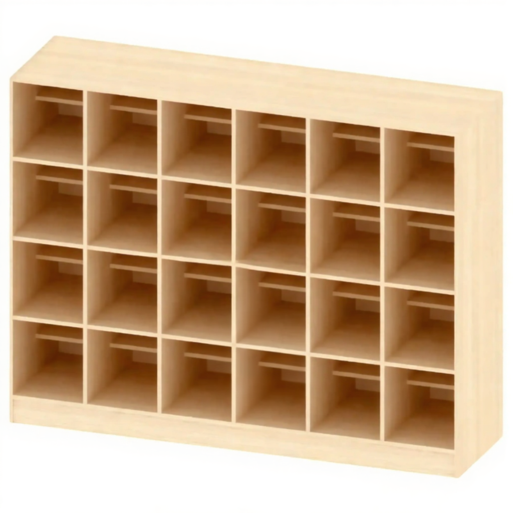 - Экономия пространства и порядок — вертикальная компоновка большого количества ячеек в одном корпусе позволяет компактно разместить обувь целого класса, избавляя от хаотичных скоплений у входа.