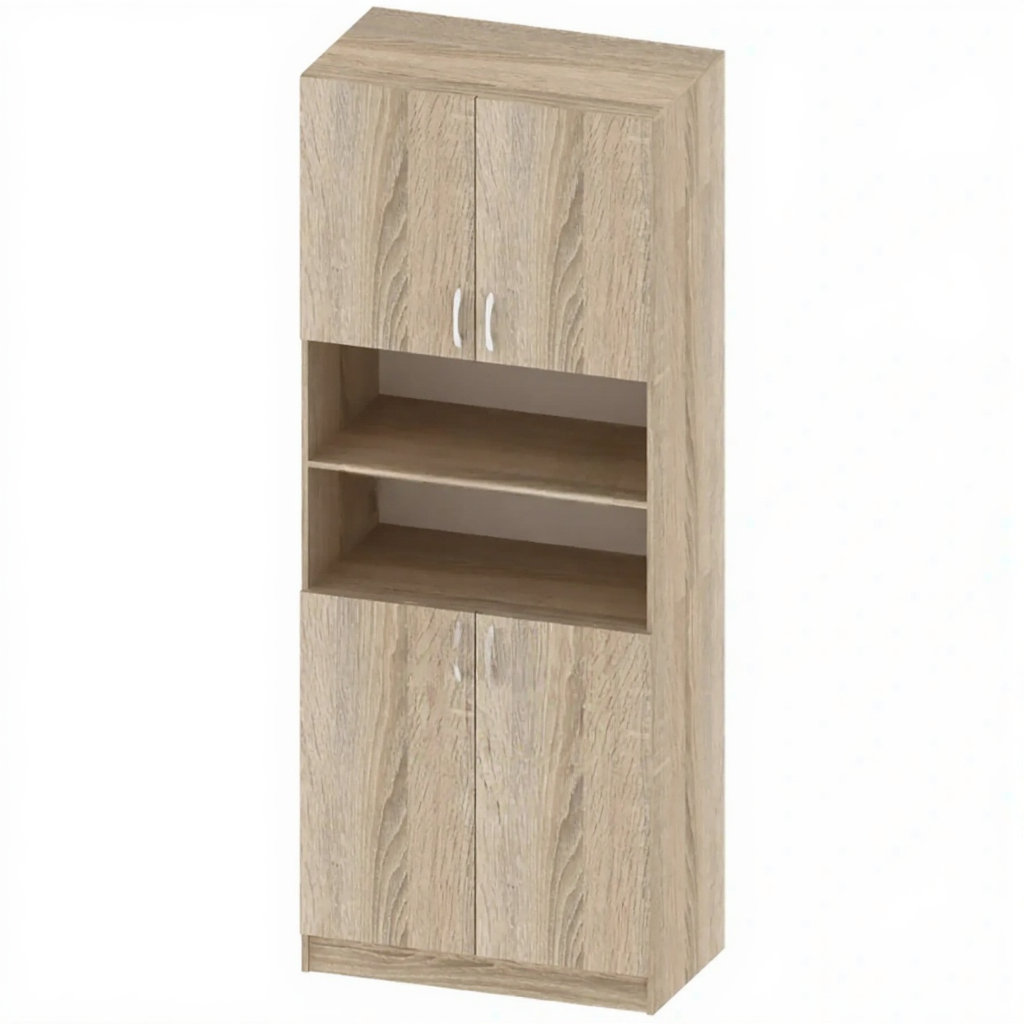 Шкаф канцелярский полуоткрытый ОФ-СТ-109-2 — это функциональное решение для хранения документов, папок, книг и канцелярских принадлежностей в образовательных, офисных и административных учреждениях. Модель имеет полуоткрытую конструкцию, сочетающую открытые и закрытые секции. Установлен на цоколь. Изготовлен из качественной ЛДСП толщиной 16 мм.