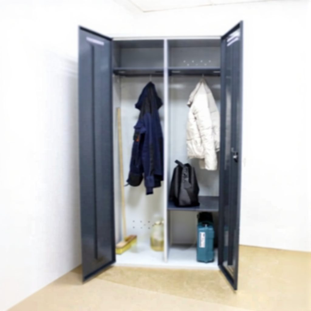 Шкаф SMART гардеробный — это универсальное решение для любых задач хранения и складирования вещей и инструментов. Модель имеет три типа комплектации с разным числом полок, перегородок и перекладин, а также возможность установки встроенной скамейки. Конструкция изготовлена из высококачественной листовой стали с надежным порошковым покрытием и оснащена вентиляционными отверстиями.