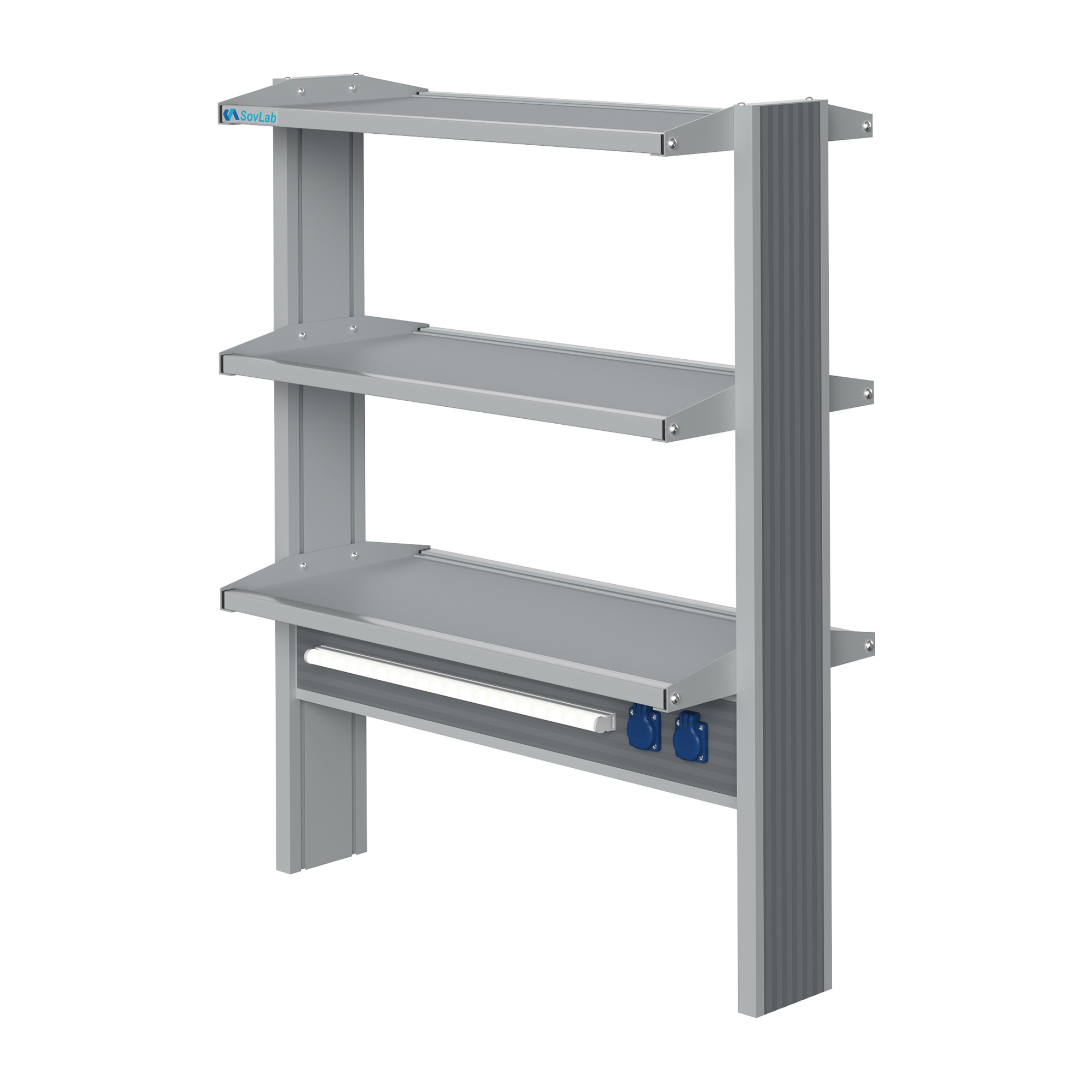 - Компактная и вместительная конструкция — три полки глубиной 408 мм позволяют разместить лабораторный инвентарь и оборудование, оптимально используя пространство.