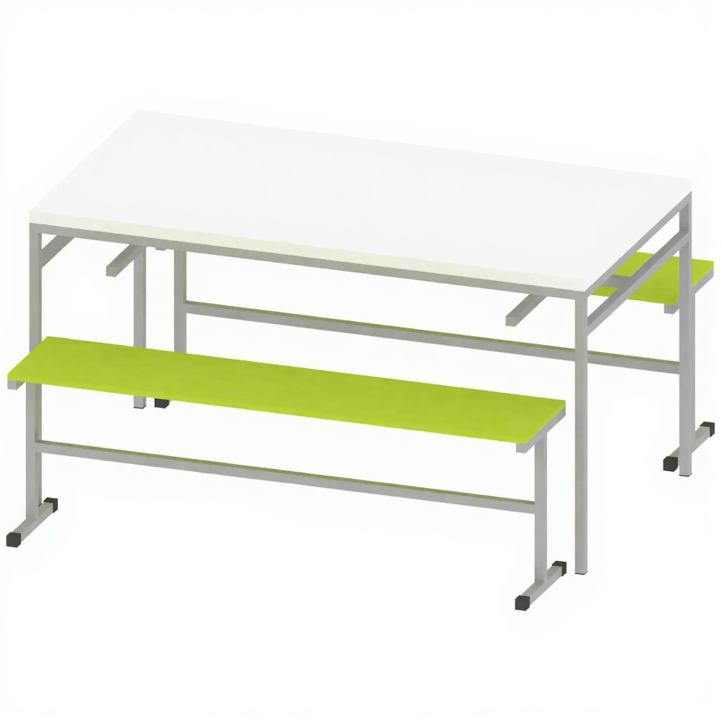 - Комфортные размеры — стол 782х1500х800 мм, скамьи 450х1400х300 мм.