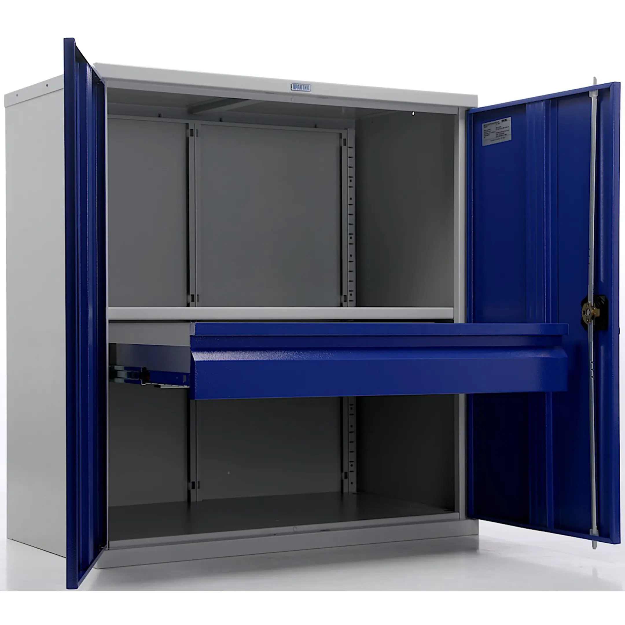 - Прочная и долговечная конструкция — каркас, ящики и дверцы изготовлены из качественной стали с антикоррозийным порошковым покрытием, что обеспечивает устойчивость к механическим нагрузкам, вибрации и воздействию производственной среды. Шкаф рассчитан на длительную интенсивную эксплуатацию.