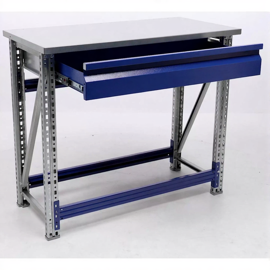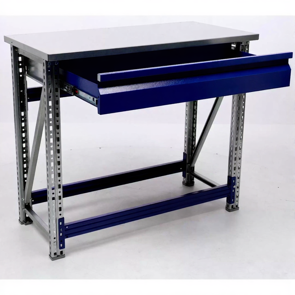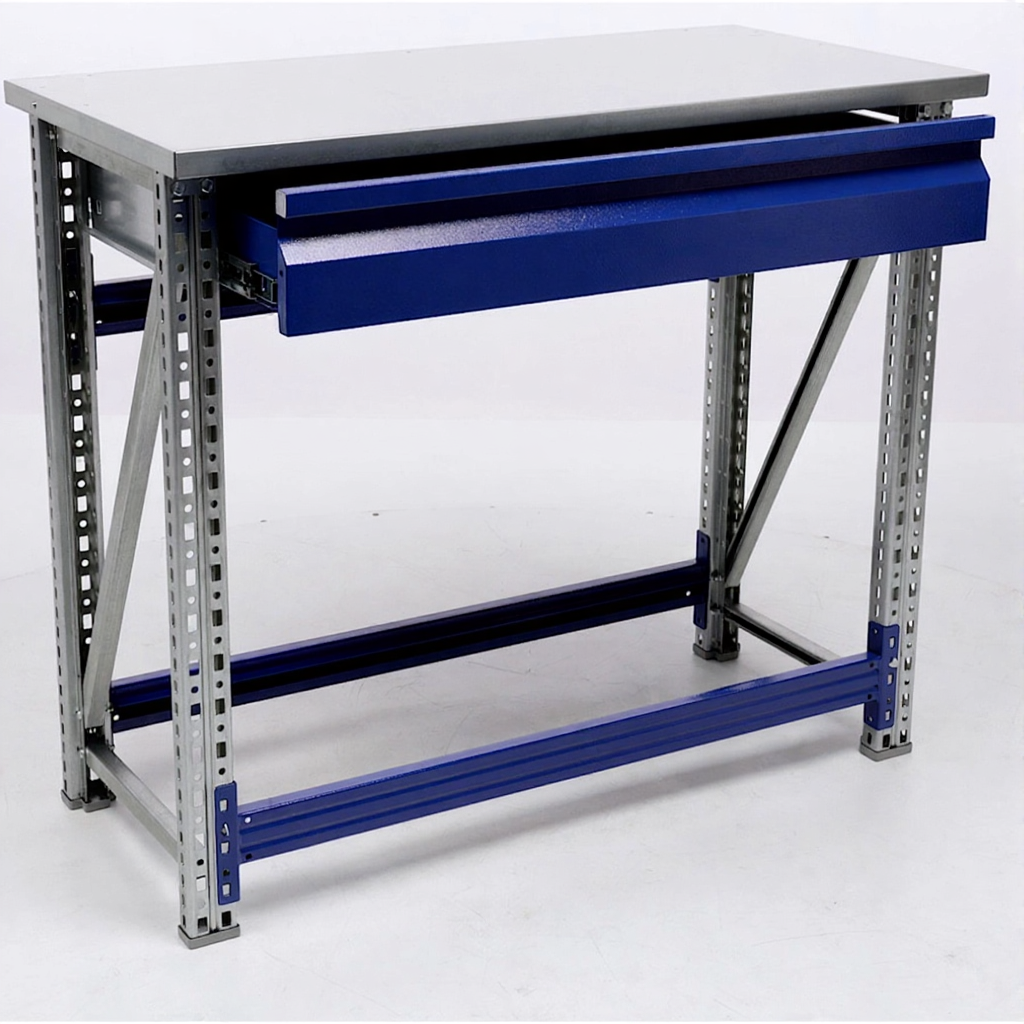 - Компактные размеры — столешница 1000х500 мм позволяет разместить верстак даже в небольших помещениях.