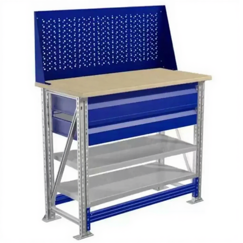 - Компактные размеры — столешница 1000х500 мм позволяет разместить верстак даже в небольших помещениях.