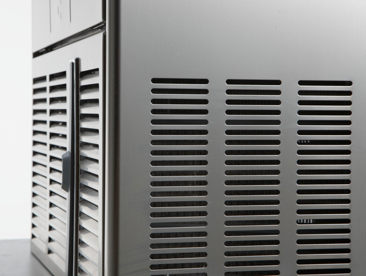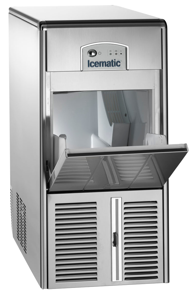 Преимущества льдогенераторов ICEMATIC Корпус полностью изготовлен из нержавеющей стали, с закругленными углами Улучшенная электронная панель управления В комплект входит евровилка и совок для льда Фронтальная вентиляция – более эффективна при высокой температуры окружающей среды Возможность очистки фильтра воздушного конденсатора Бункер для хранения льда не имеет острых углов Электронный датчик наполнения бункера для более точного измерения Боковая поддержка для совка в бункере Дефлектор не препятствует открытию двери Улучшенная конструкция дверных петель Новый уплотнитель двери для улучшения изоляции Отверстие слива поднято на высоту 60 мм, что облегчает подключение к канализации Подводка воды и электричества в боковой части оборудования Возможность использовать механический и электронный датчик уровня воды Полуавтоматическая система самоочистки Увеличение эффективности и снижение энергопотребления Климатический класс 4+ Описание льдогенератора ICEMATIC E21 A Льдогенератор E21 A с воздушным типом охлаждения итальянского производителя ICEMATIC производит пальчиковый лед, напоминающий форму наперстка — эта разновидность кубикового льда обладает самой большой эффективностью охлаждения среди своих аналогов и дольше сохраняет низкую температуру за счет большей площади соприкосновения с жидкостью. Такой лед широко используется для приготовления коктейлей, алкогольных и прохладительных напитков в кафе, барах и ресторанах. Размер получаемого льда составляет 30х40 мм, вес — 17 гр. Основное преимущество льдогенератора с воздушным типом охлаждения — расход воды потребляется примерно в четыре раза меньше, чем при водяном охлаждении. Он прост в установке, отверстие для слива воды поднято на высоту 60 мм, подводка электричества и воды расположена в боковой части оборудования. Льдогенератор оснащен встроенным бункером для льда, корпус полностью выполнен из нержавеющей стали с закругленными углами. Дефлектор не препятствует открытию двери — это исключает какие-либо поломки при ее открытии. Оборудование не требует чистки конденсатора, так как имеет специальные фильтры, предотвращающие его загрязнение.