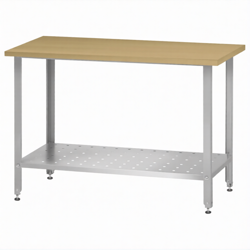 Стол кондитерский СПРн 860х1500х800 «Norma Inox» бук/40 (полка перф., ножка угловая)
