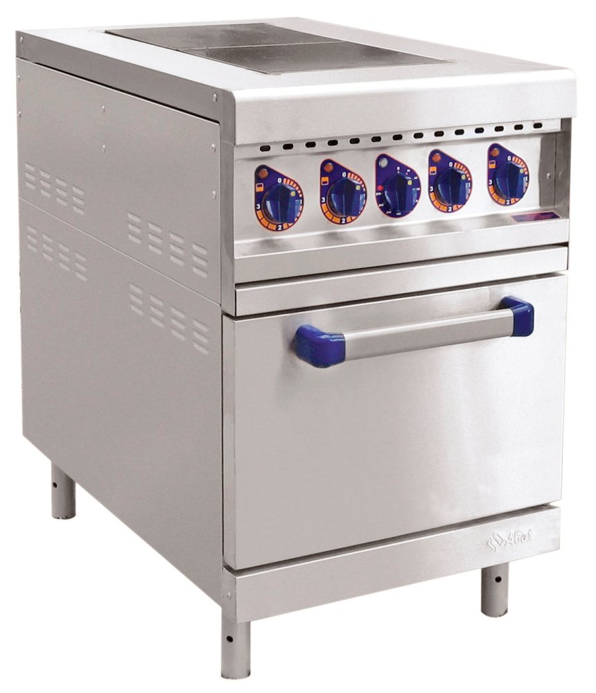 В корпус плиты встроен жарочный шкаф вместимостью GN1/1. Мощность нижних и верхних блоков ТЭНов шкафа регулируется отдельно. Рабочий диапазон температур составляет от 20 до 270 °C.