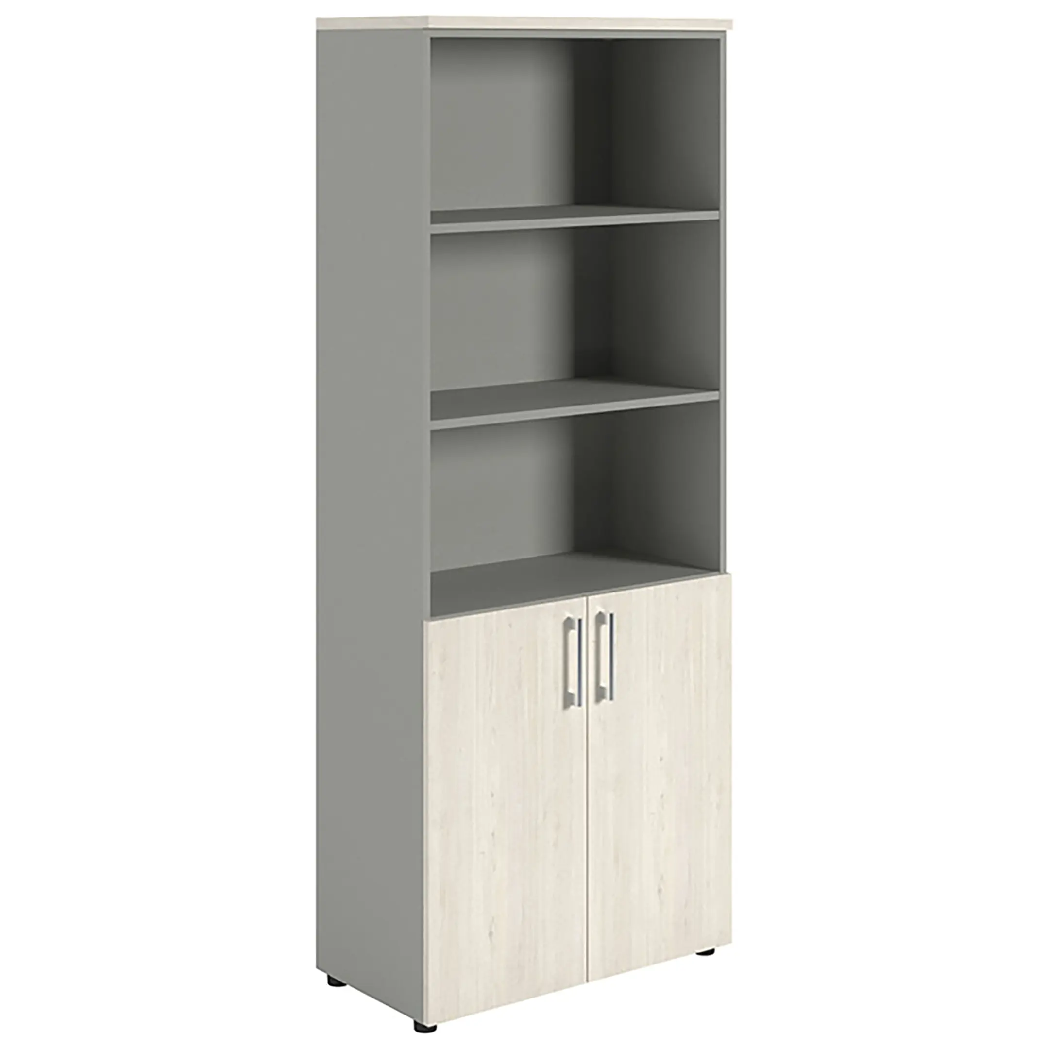 Шкаф NW 2080/2 полузакрытый белое дерево/серый предназначен для хранения.