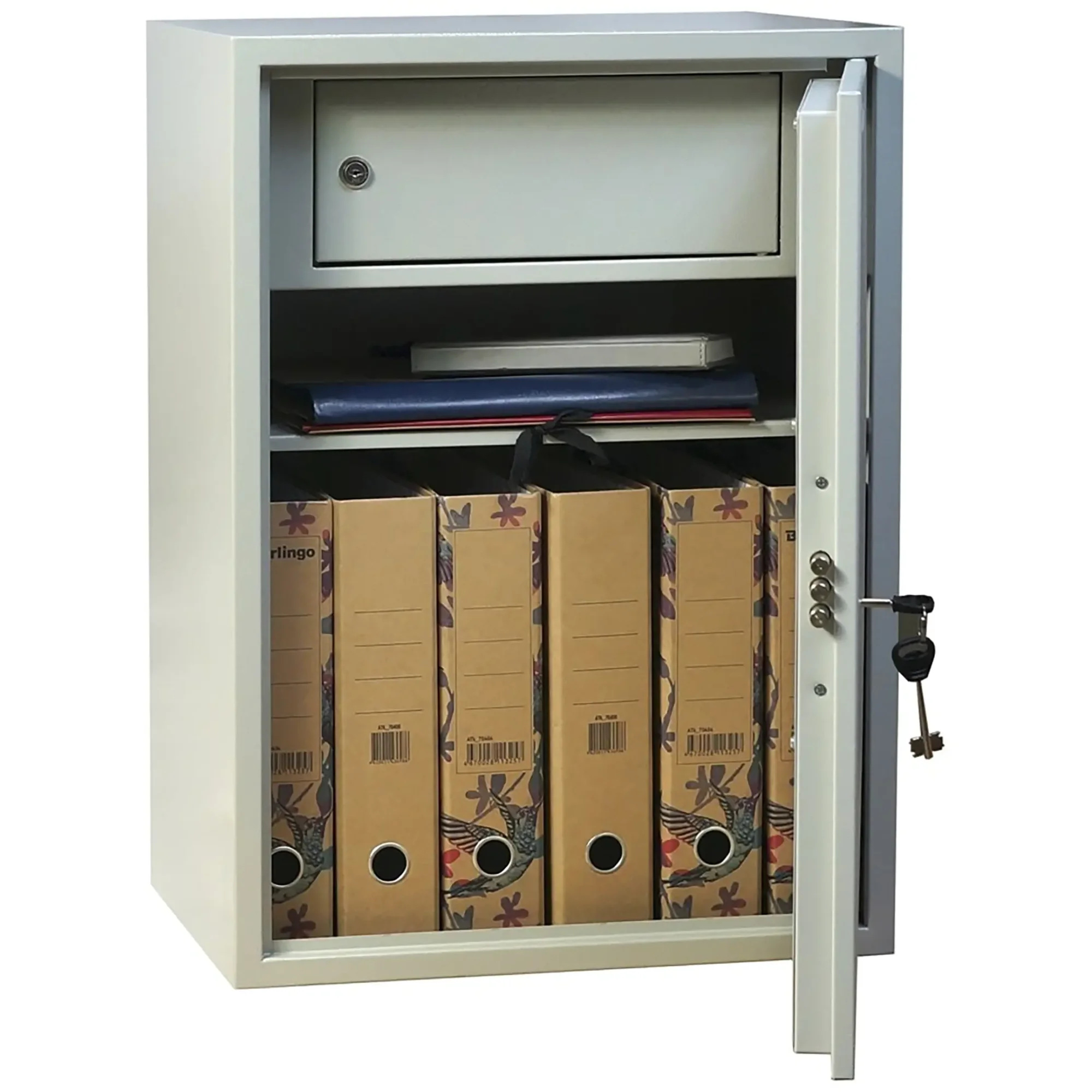 - Эффективная организация в малом объеме — несмотря на компактные размеры, внутреннее пространство шкафа продумано до мелочей. Оно включает регулируемые полки, отделения для документов и закрывающиеся секции, что позволяет удобно систематизировать бумаги, канцелярские принадлежности и личные вещи сотрудника.