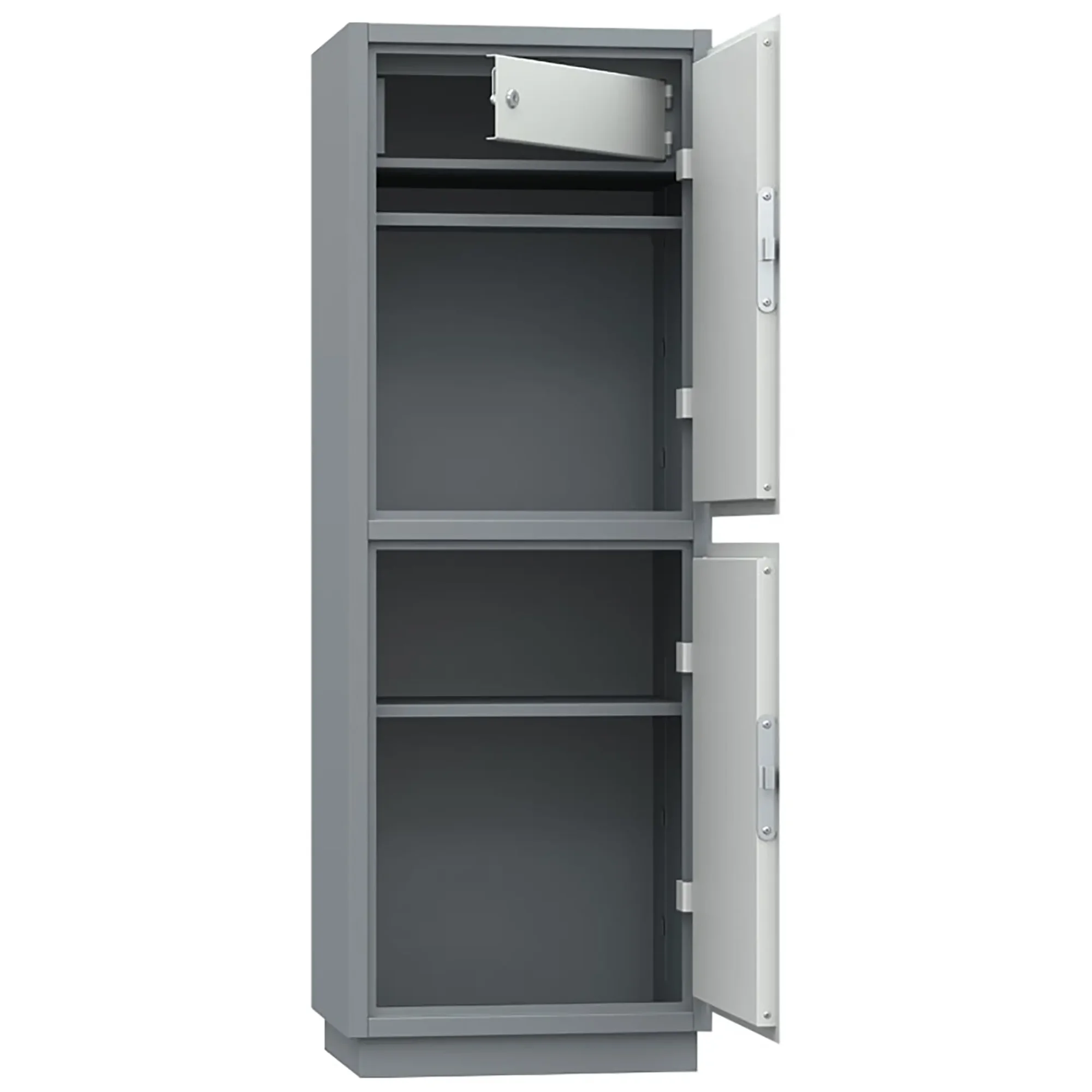 • Вся линейка бухгалтерских шкафов окрашена в два цвета: корпус - RAL 7011, дверь — RAL7035.