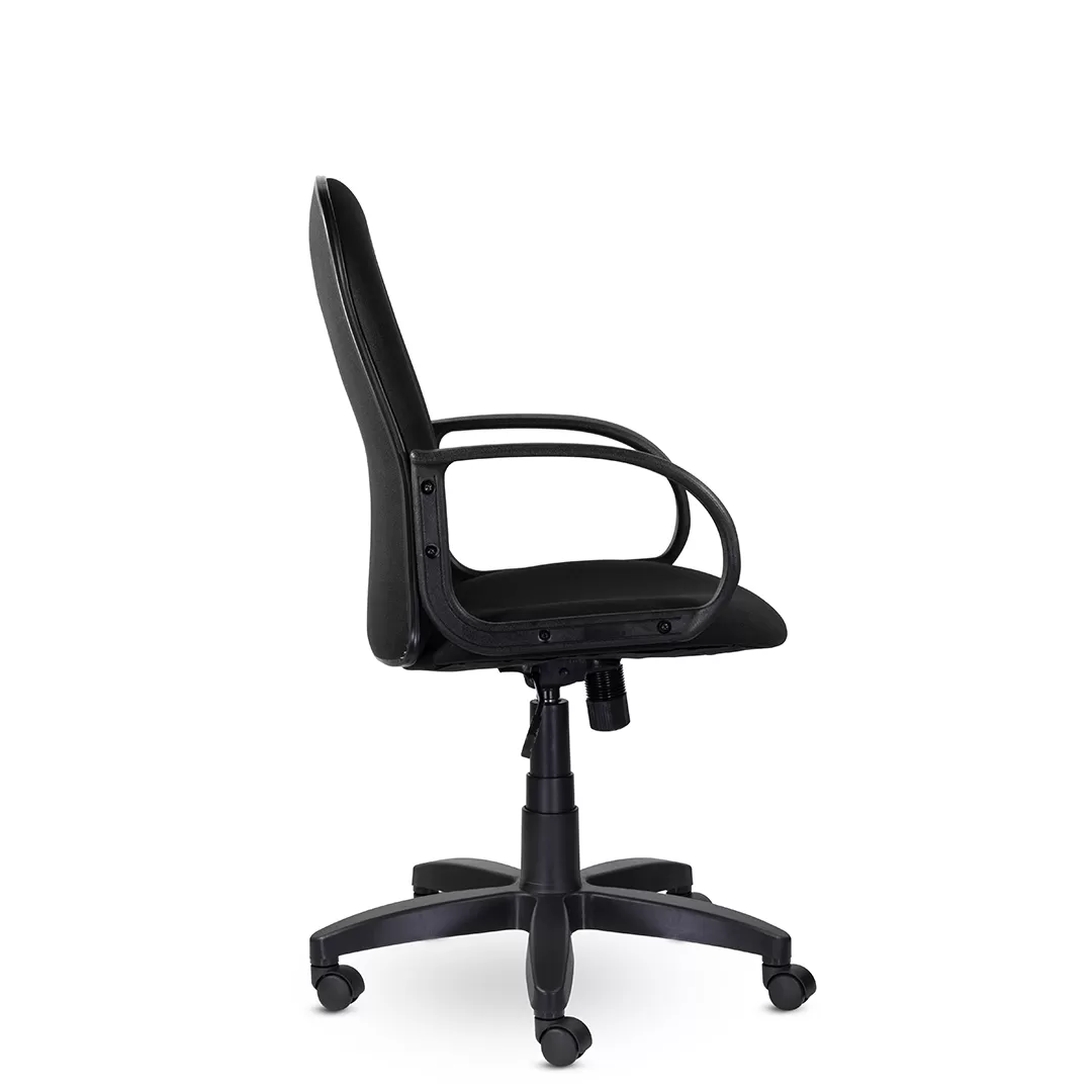 - Прочная пластиковая крестовина и подлокотники — устойчивость и долговечность конструкции, простая эксплуатация.