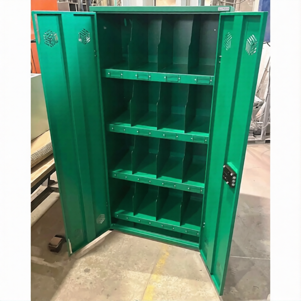 • Шкаф усиленный для СИЗ комплектуется опечатывающим устройством и регулируемыми опорами для компенсации неровностей пола.