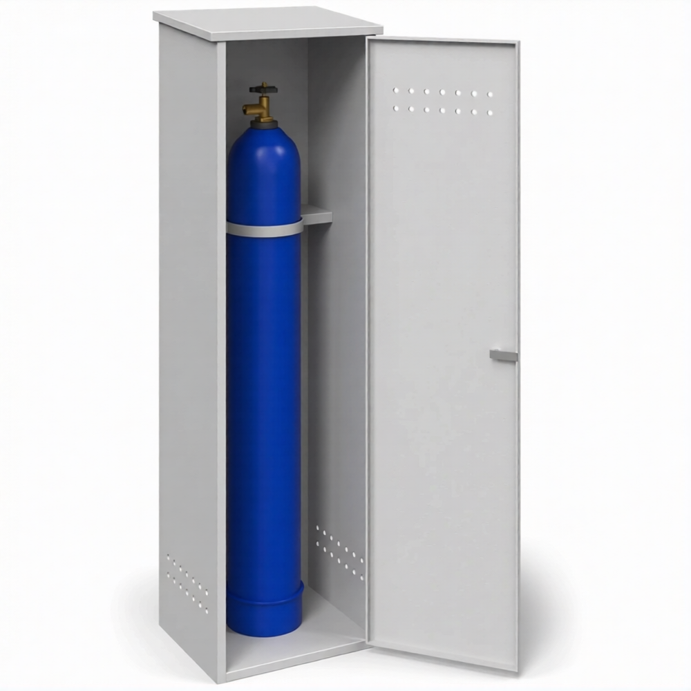 - Максимальная прочность и несущая способность за счет сварной конструкции — все основные силовые элементы этого шкафа соединены методом сварки, образуя монолитный, исключительно жесткий и прочный корпус. Такая конструкция гарантированно выдерживает значительный вес полного 40-литрового баллона (до 80 кг и более), исключает деформацию, перекосы и обеспечивает абсолютную устойчивость даже при случайном ударе или в условиях вибрации.