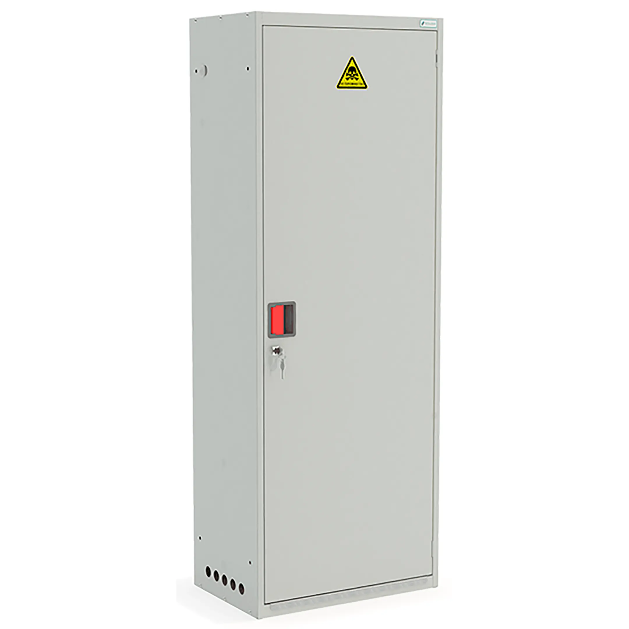 - Прочная и рассчитанная на нагрузку конструкция — шкаф изготавливается из качественной стали с антикоррозионным покрытием, рассчитан на значительный вес двух полных баллонов (суммарно более 120 кг) и длительную эксплуатацию в условиях цеха или специализированного помещения.