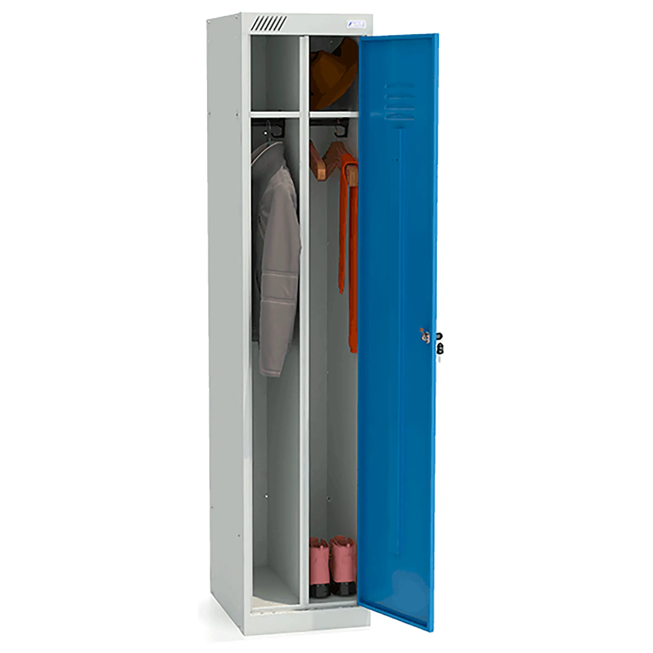 Шкаф для одежды ШРК 21-400 предназначен для хранения сменной одежды в офисных, производственных, спортивных помещениях, а также для организации камер хранения в магазинах и супермаркетах.